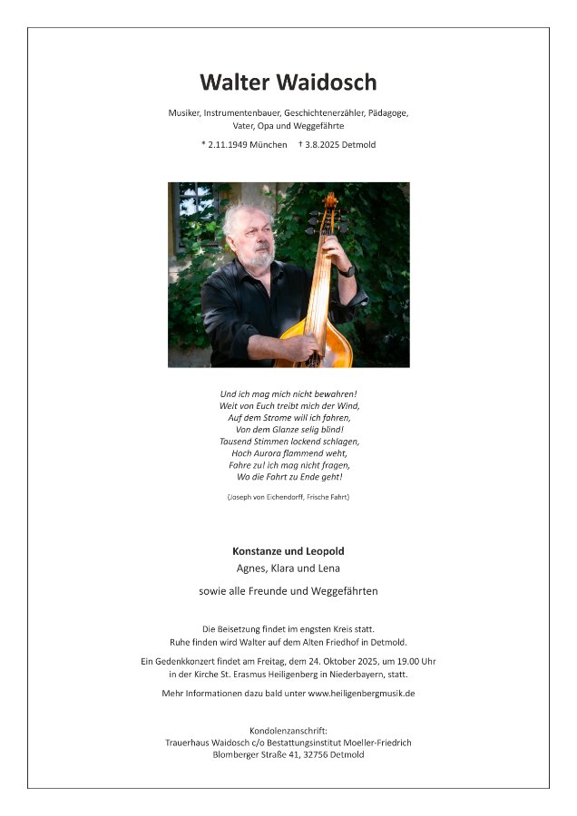 du fehlst so sehr! Danke für alle schönen Momente auf Burg Sternberg, für deine unendliche Geduld beim Fidelbau, für deine Geschichten am Brunnen, für deine Liebe zum Basslirone, für deinen Humor, für dein Interesse an jedem Menschen und besonders auch für musizierende Kinder, für deine Liebe. Du warst ein Gewinn und ein Teil von dir wird bleiben, solange Menschen sich erinnern und auf deinen Instrumenten spielen oder aus deinen Noten, auf die Burg kommen. RIP.